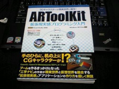 ARToolKitの本を見かけたので購入しました。2980円なり。 まだ最初のほうしか読んでないのですが、なかなかわかりやすく説明されていると 思います。 ARToolKitのAPIだけでなく、OpenGLについての説明もあるし、 概念的なものが図入りで説明されているのでと…